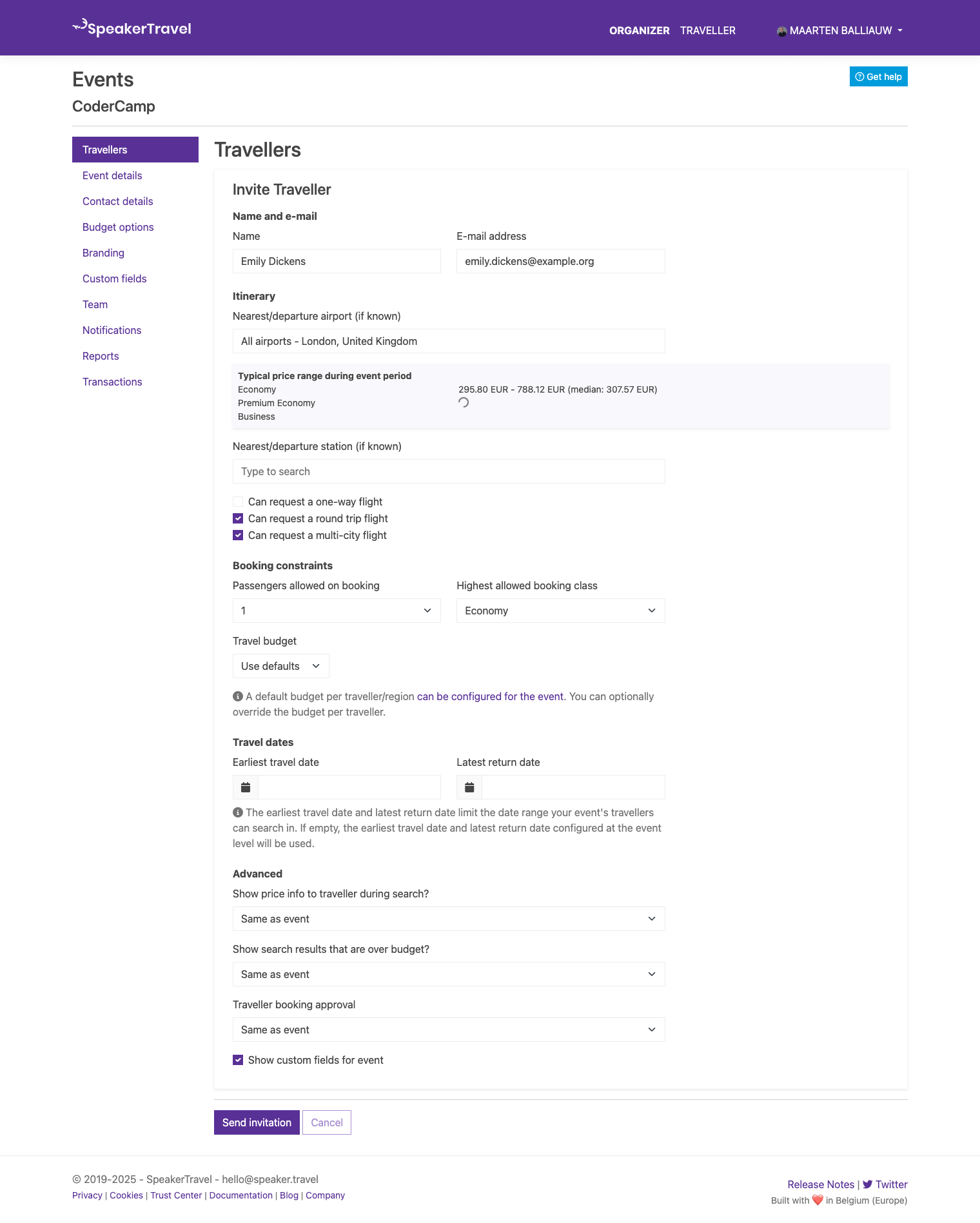 Once your event is set up, you can start inviting travellers.